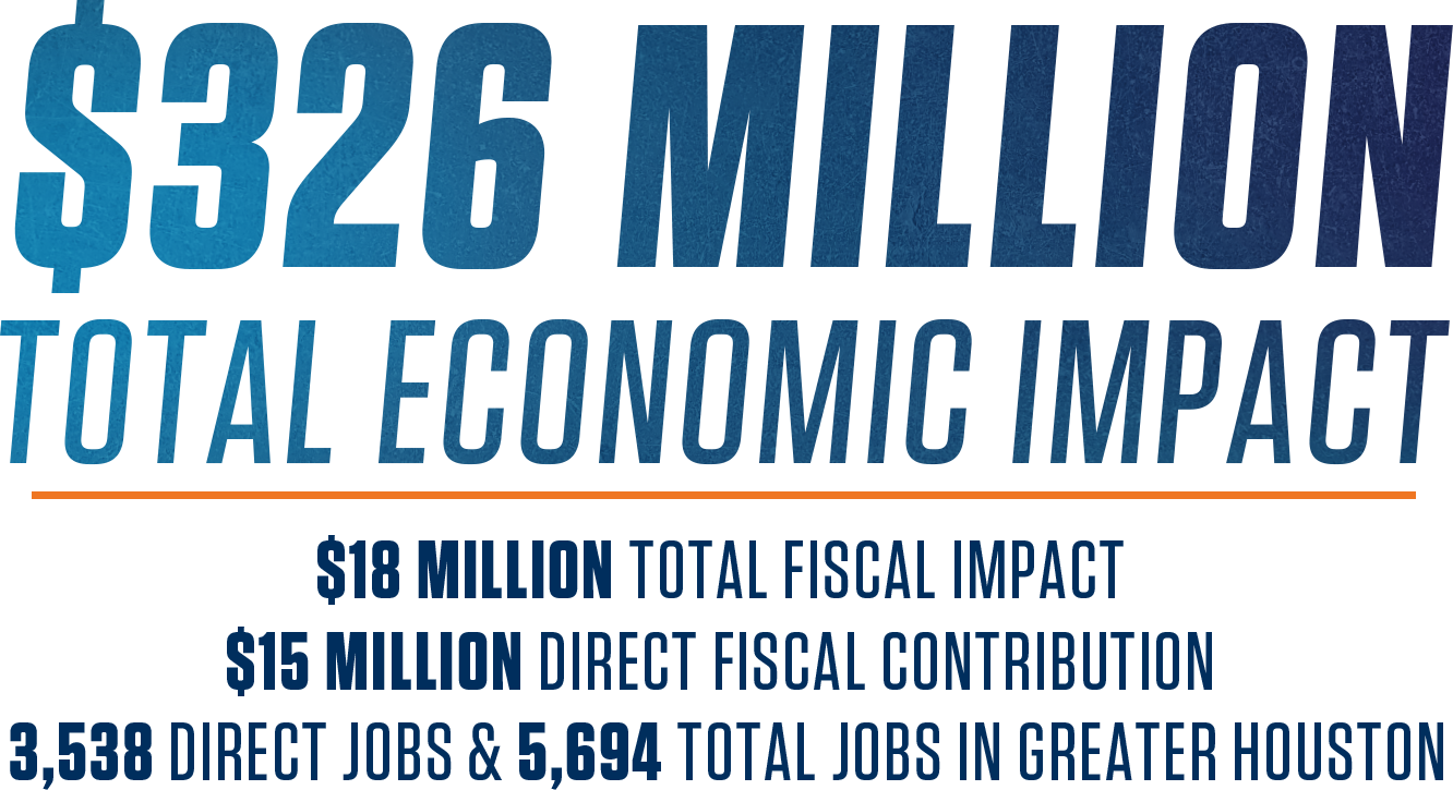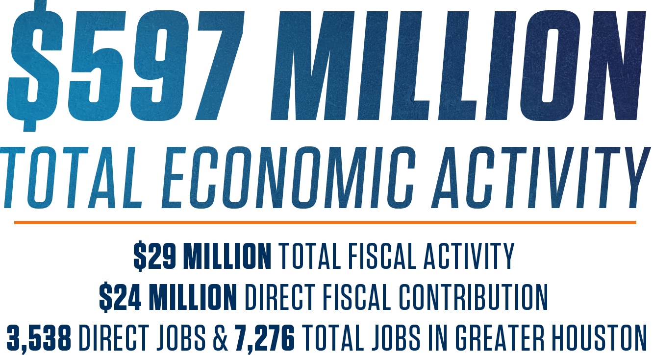 Economic impact measures the economic effects of new spending in Greater Houston generated by the Rodeo. Economic activity measures the economic effects of all spending in Greater Houston generated by the Rodeo, including spending by local residents, visitors, and the Rodeo. The economic impact and economic activity depend upon the relevant spending associated with the 2024 Rodeo. This analysis is based on data gathered at the Rodeo through on-site intercept surveys, interviews, and handouts administered by volunteers or staff.