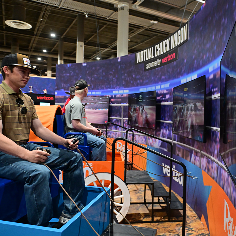 The Virtual Chuck Wagon is an interactive technology experience blending Western Heritage and friendly competition into a unique, real-life game simulation for a chance to win fun prizes. Participants will saddle up, hold onto the horse’s reins, and be transported onto the Rodeo dirt to compete in a two-lap virtual whirlwind race. Just like the RODEOHOUSTON® Chuck Wagon Races inside NRG Stadium, sponsored wagons will be represented in the virtual experience. Riders can track the day’s winning teams on a leaderboard displayed alongside the game.