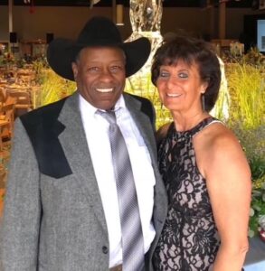 Coffee: I went to the college finals in Casper. She was the security there, and I didn’t know her from Adam. I drove up there at two or three o’clock in the morning and I’m cruising through. I walked up there, and I didn’t know where Tom Jones was, the head of the rodeo. I walked up and said, “Ma’am, do you know where I can find Tom Jones?” And she looked at me and made a joke that I didn’t understand, and I was totally lost. And I went, “What?”  And I had to think about it for a second. She had grown weary of college kids running around late into the night, so she was giving me a hard time. She didn’t have a clue who I was. So, we get to the time of the performance, and she is setting up security at all the gates around the arena, she brings this guard over to where we are and put him at the gate, and I’m standing there working on my barrel. She looks down and goes, “Oh no, not you!!” I looked up and said, “Oh, there you are!”  I got to messing with her during the performance so bad that I felt bad about it. I asked her to lunch, and she finally went out with me, and the rest is history.