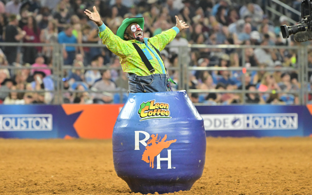 You know him as the famous RODEOHOUSTON ® barrelman. Dressed in his colorful get-up garnished with staple bibs and signature green hat, Leon Coffee’s legacy has been three decades in the making! Coffee was named RODEOHOUSTON’s 2025 Hall of Fame Inductee for his everlasting impact on the 20-plus day event.