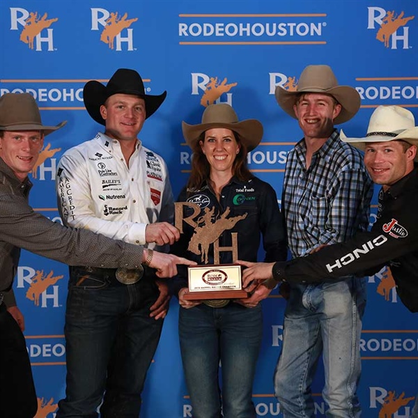 Champions from the top rodeos in the US and Canada gathered in NRG Stadium, Sunday, March 18, to compete in the RODEOHOUSTON Super Shootout: North America’s Champions, for their chance to win $25,000 and bragging rights as the best of the best. With a total purse of $250,000, the RODEOHOUSTON Super Shootout is one of the richest one-day rodeo events in the world. Each rodeo athlete competed as an individual as well as with a team. Each champion received a $25,000 payout, and the winning team received a $12,500 payout. The teams consisted of the champion athletes from the following eight rodeos: Calgary Stampede, Cheyenne Frontier Days, Fort Worth Stock Show & Rodeo, National Western Stock Show, Reno Rodeo, Rodeo Austin, RODEOHOUSTON, and San Angelo Stock Show and Rodeo. Tonight’s high point team was Reno Rodeo. The winning team consisted of bareback rider Wyatt Bloom, steer wrestler Dakota Eldridge, saddle bronc rider Heith Demoss, barrel racer Nellie Williams-Miller and bull rider Brady Portenier.