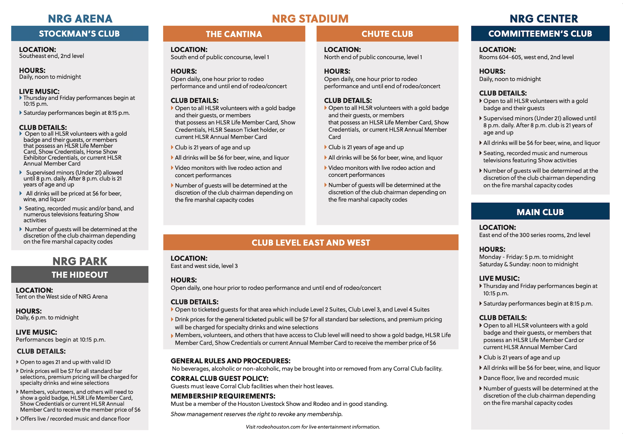 Houston Livestock Show and Rodeo Corral Clubs are Texas Alcoholic Beverage Commission-licensed establishments and are cashless.