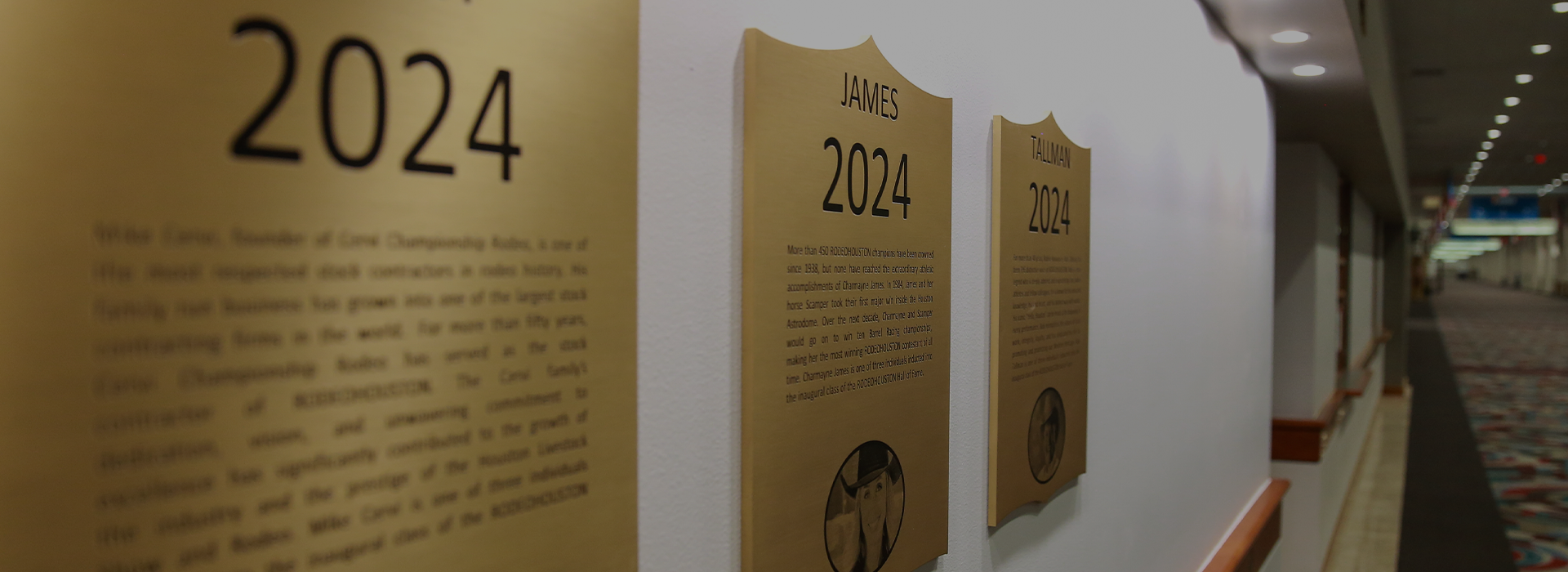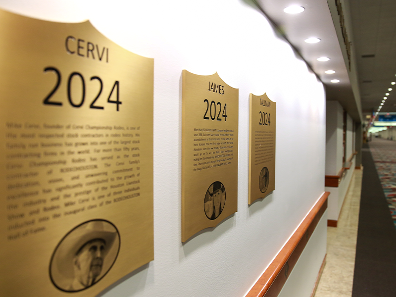 The RODEOHOUSTON Hall of Fame, is located outside of the Houston Livestock Show and Rodeo™ offices in NRG Center.