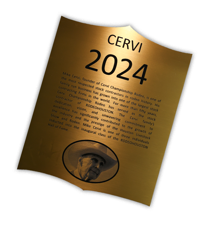 Mike Cervi, founder of Cervi Championship Rodeo, is one of the most respected stock contractors in rodeo history. His family run business has grown into one of the largest stock contracting firms in the world. For more than fifty years, Cervi Championship Rodeo has served as the stock contractor of RODEOHOUSTON. The Cervi family’s dedication, vision, and unwavering commitment to excellence has significantly contributed to the growth of the industry and the prestige of the Houston Livestock Show and Rodeo. Mike Cervi is one of three individuals inducted into the inaugural class of the RODEOHOUSTON Hall of Fame.