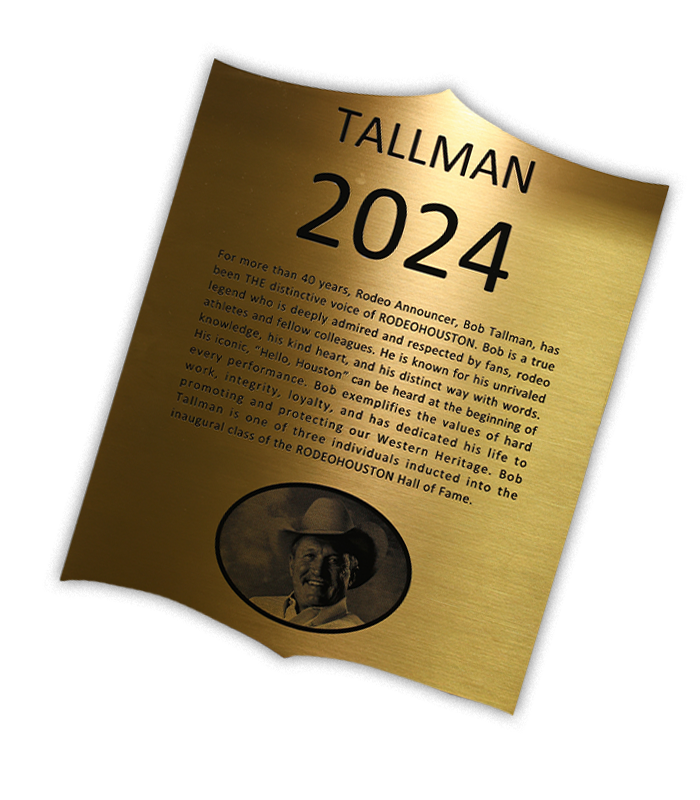 For more than 40 years, Rodeo Announcer, Bob Tallman, has been THE distinctive voice of RODEOHOUSTON. Bob is a true legend who is deeply admired and respected by fans, rodeo athletes and fellow colleagues. He is known for his unrivaled knowledge, his kind heart, and his distinct way with words. His iconic ‘Hello, Houston’ can be heard at the beginning of every performance. Bob exemplifies the values of hard work, integrity, loyalty, and has dedicated his life to promoting and protecting our Western Heritage. Bob Tallman is one of three individuals inducted into the inaugural class of the RODEOHOUSTON Hall of Fame.